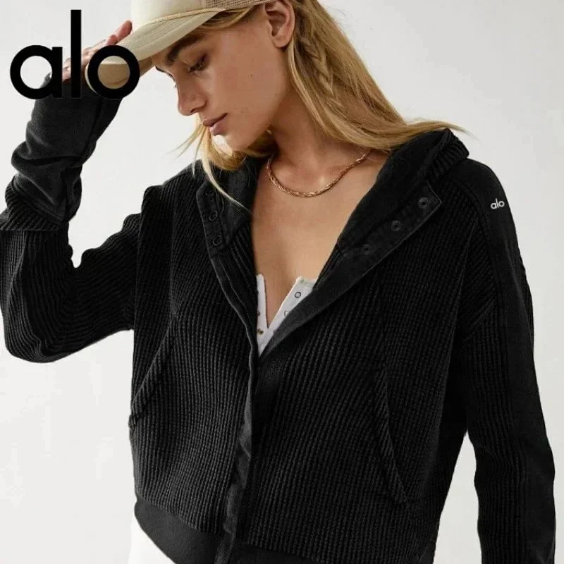 ALO Label Waffle Hooded Cardigan Sweatshirt with Zip-Up (3 styles)-2566