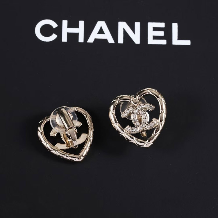 Home > Chanel gold diamond heart hollow double c rhinestone ear clip-3754