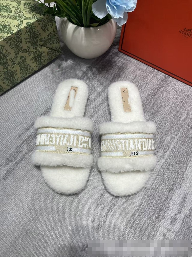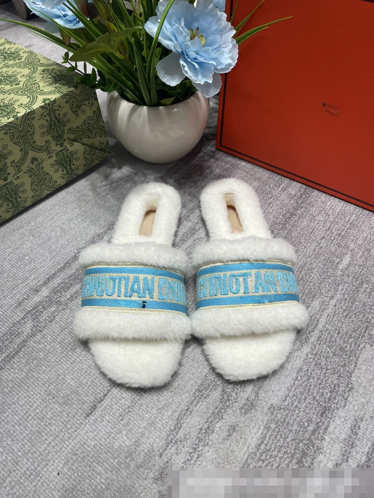 Dior embroidered shearling platform mules-5687