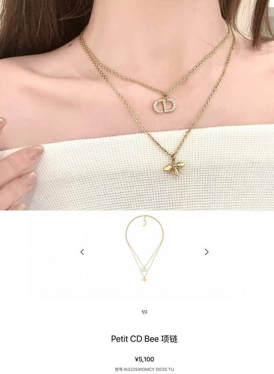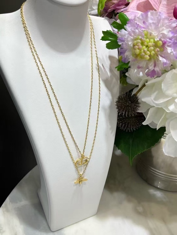 Home > Dior gold diamond bee pendant double necklace-3706