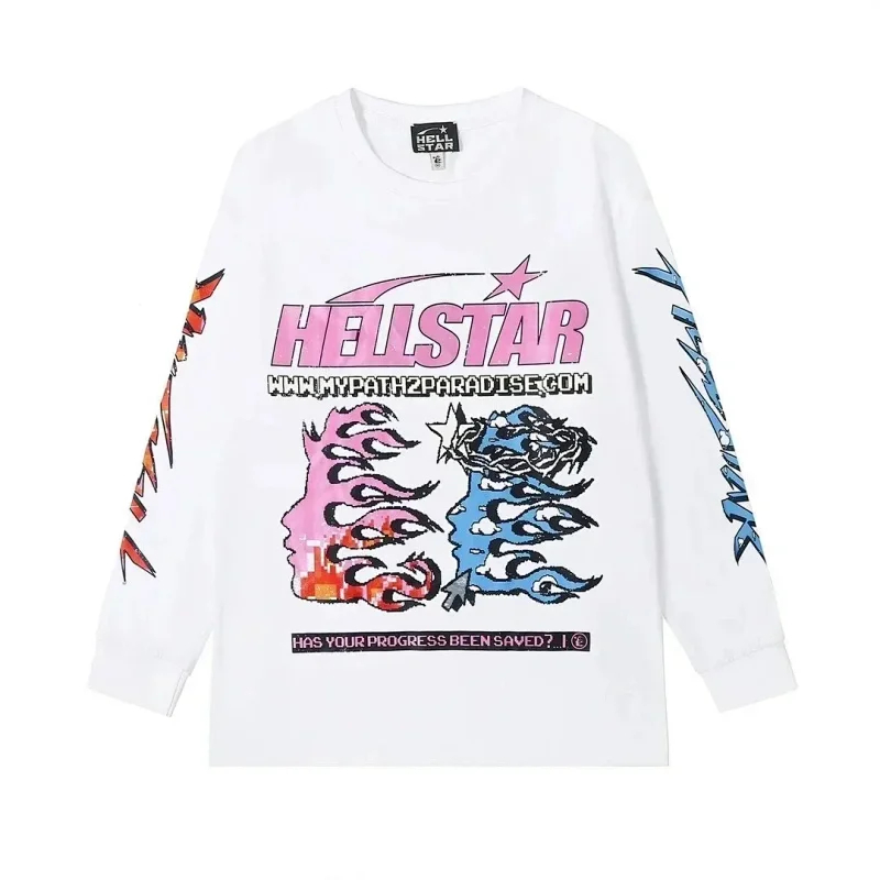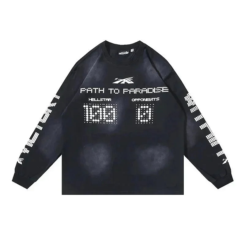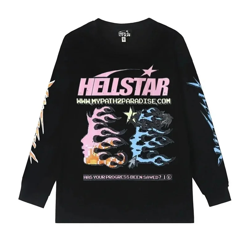 Home > Ins same style Hell Star Retro Print Men's and Women's Loose Casual Long Sleeve T-shirt-2514