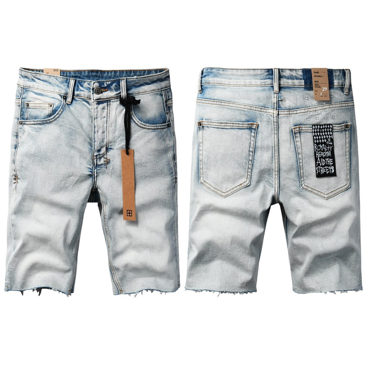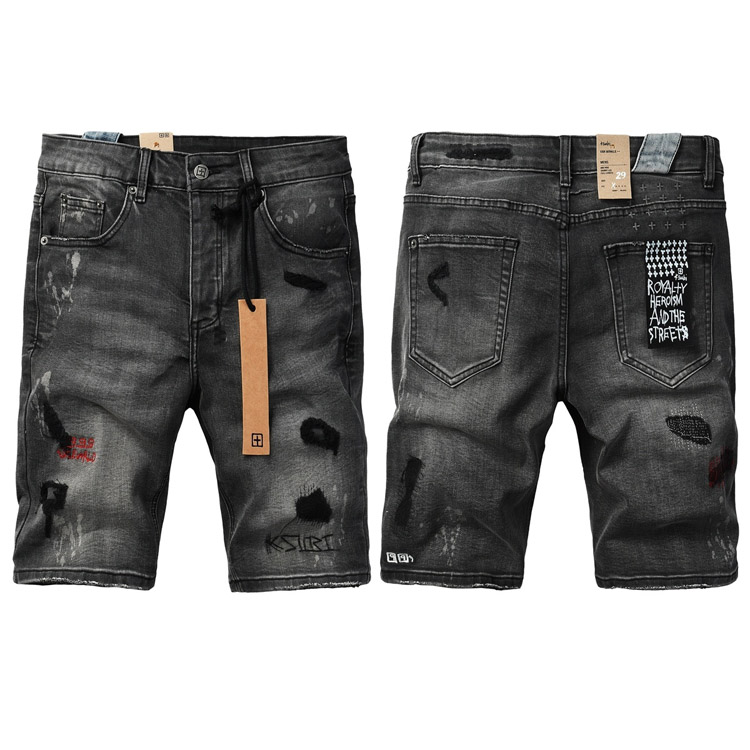 KSUBI ripped patch denim shorts, cropped pants, slim fit-4256