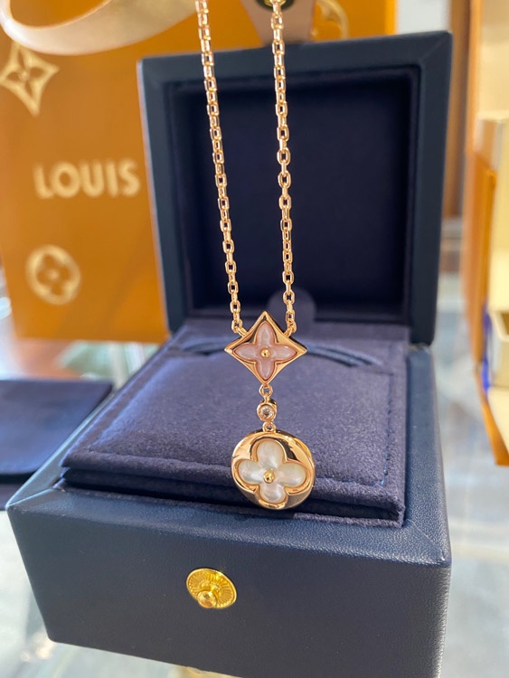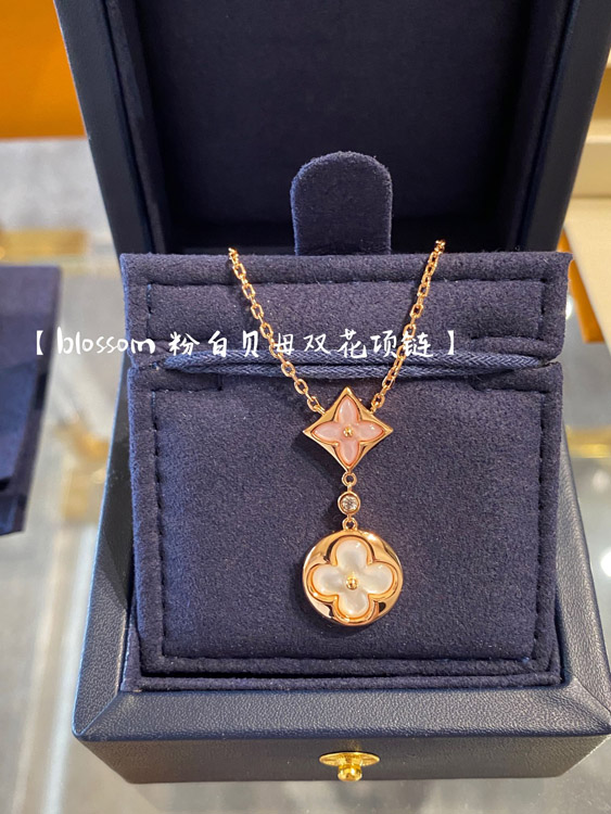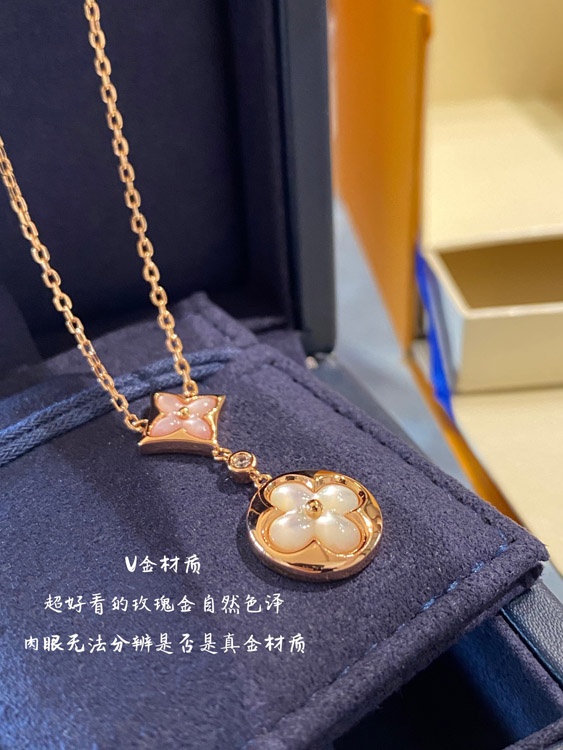 Home > Louis Vuitton LV rose gold two-tone shell double flower necklace-3582