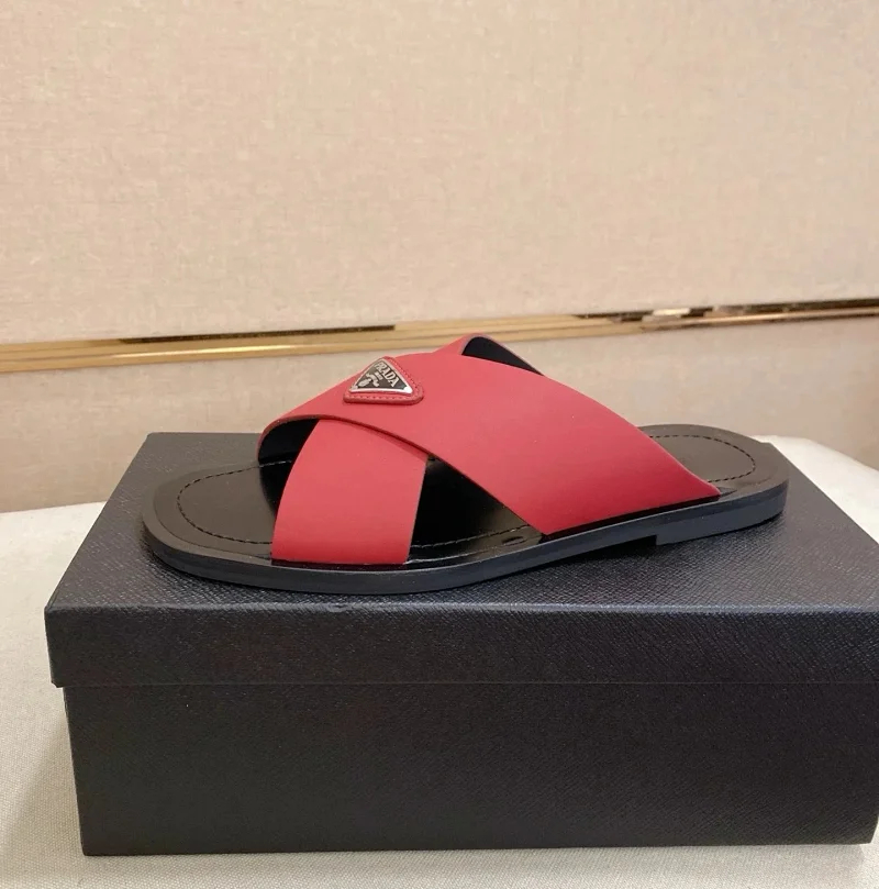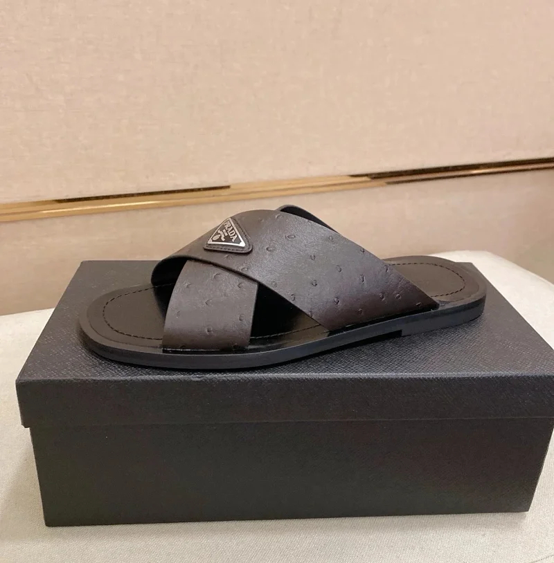 Prada Ultralight Breathable Leather Cross Slippers-5553