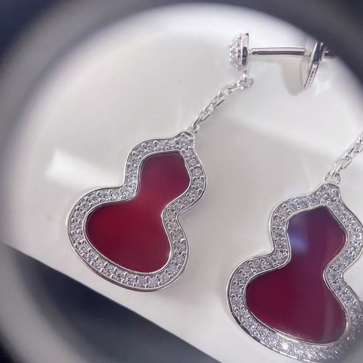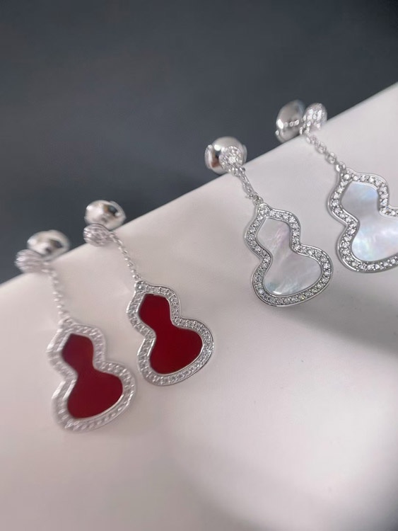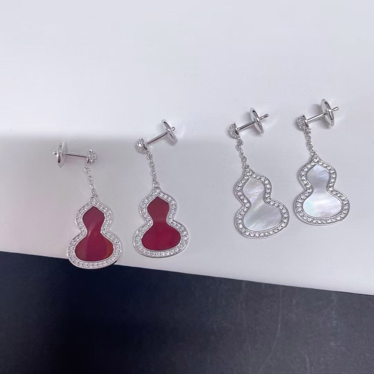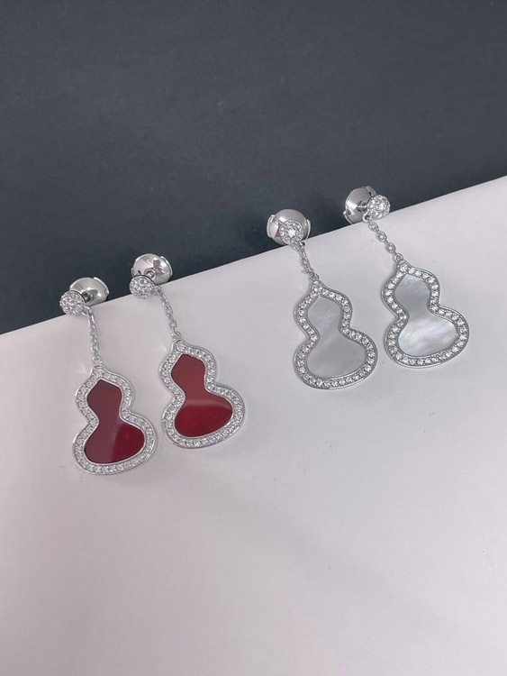 Qeelin White mother-of-pearl carnelian gourd earrings-3674