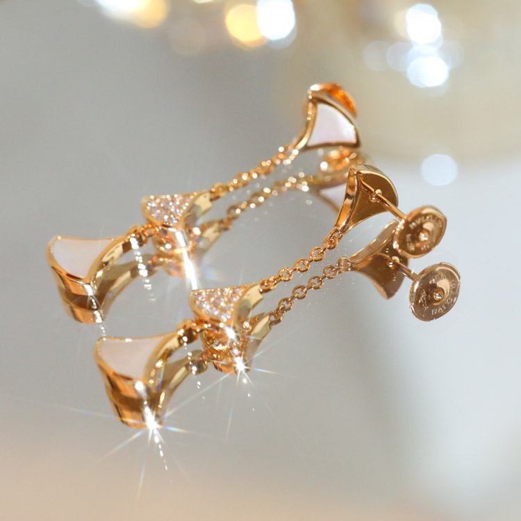 Bulgari fan-shaped white mother-of-pearl diamond earrings black agate long earrings-3861