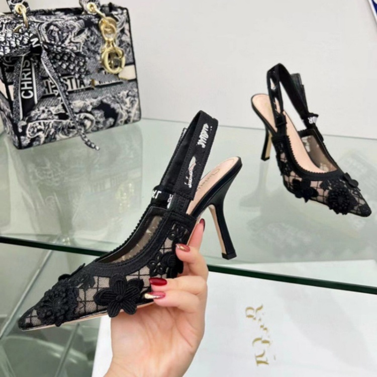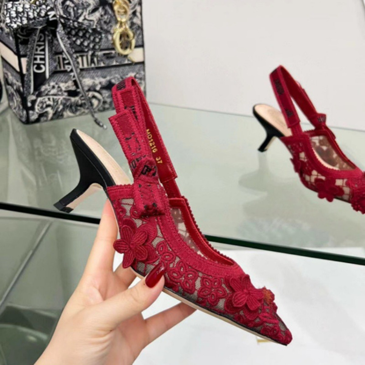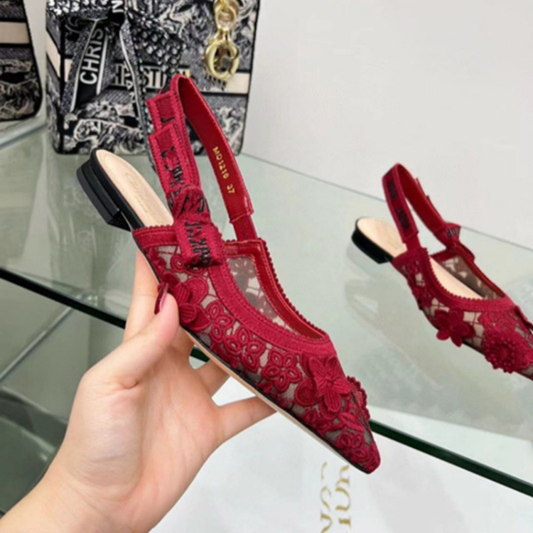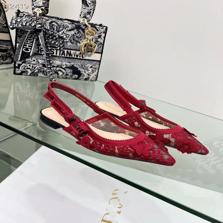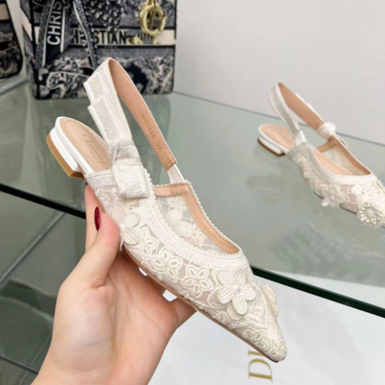 Dior embroidered flat shoes with bow and lace cutouts-5615