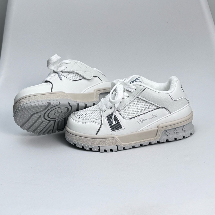 LOUIS VUITTON LV Trainer leather round toe lace-up low-top children's sneakers-4084