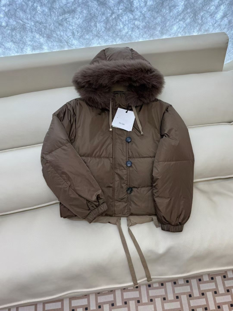 MaxMara reversible down jacket with fur-trimmed hood and elasticated waist-5348