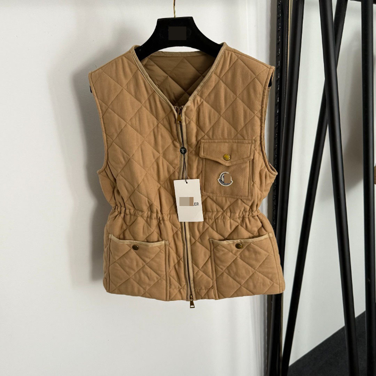 Moncler new zippered linen quilted pocket cotton vest-5415