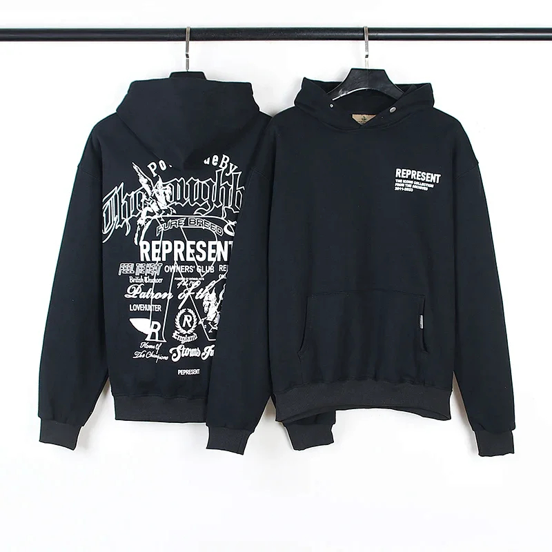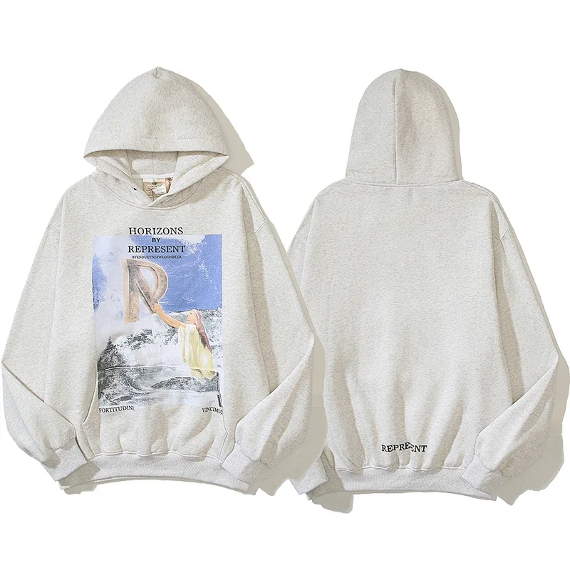 Home > REPRESENT Printed Drawstring Hooded Jersey Sweatshirt-4497