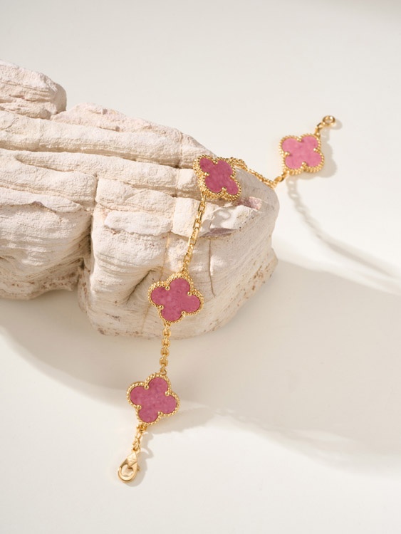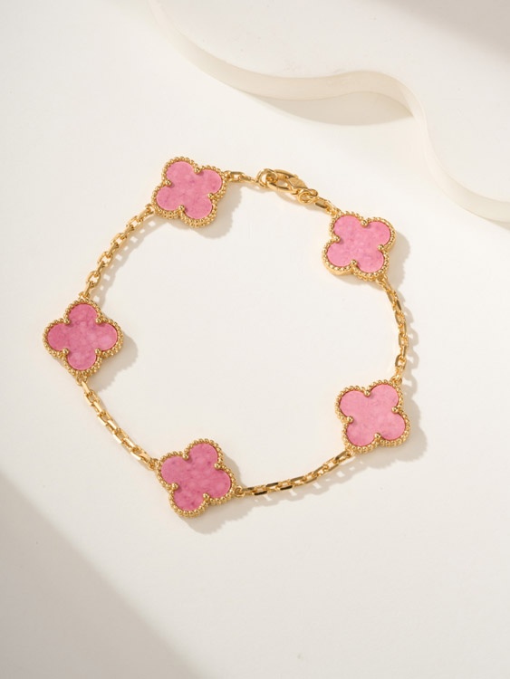 Van Cleef & Arpels Rose Quartz Flower Bracelet-3922