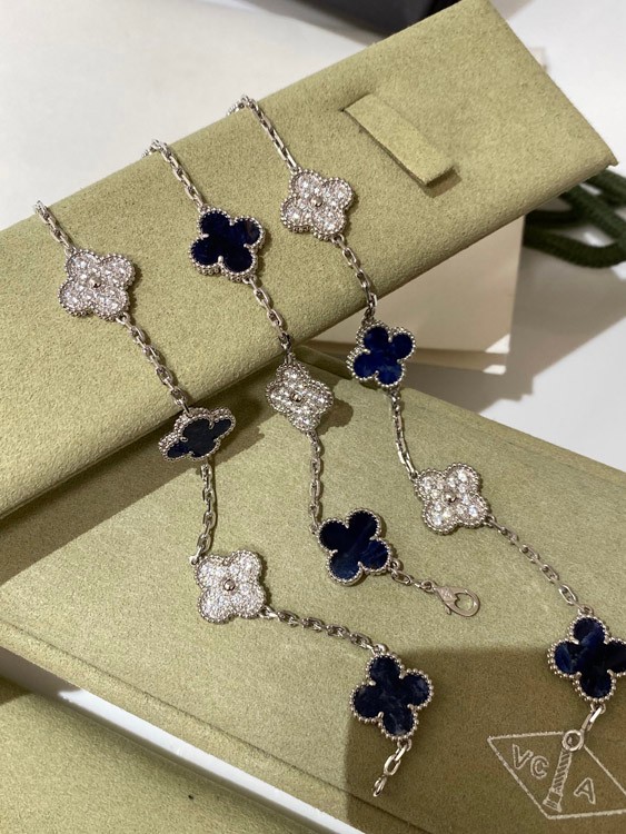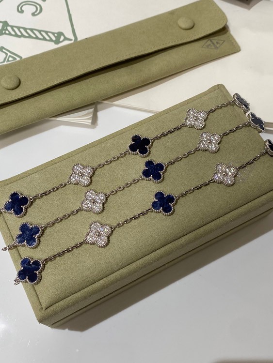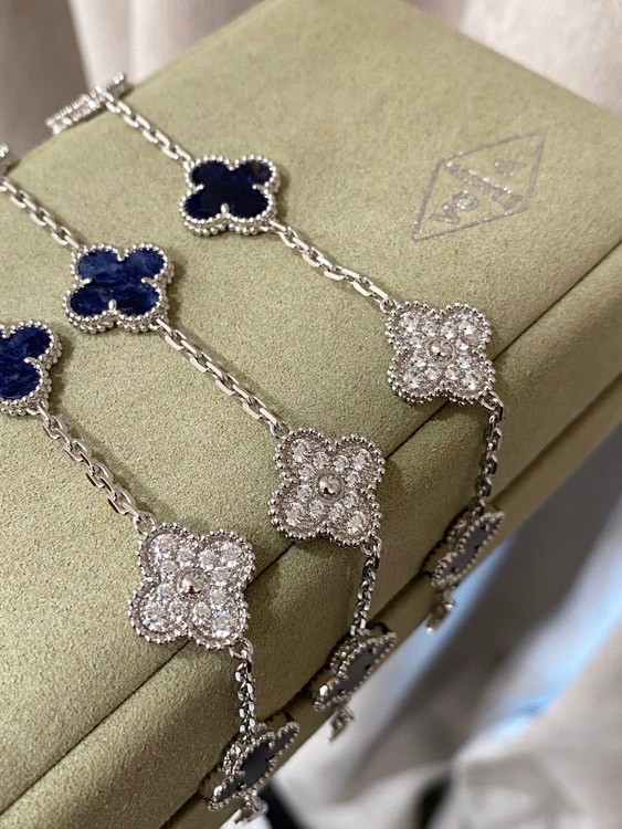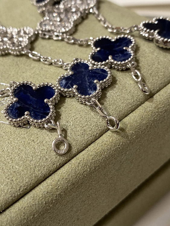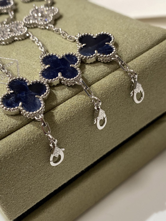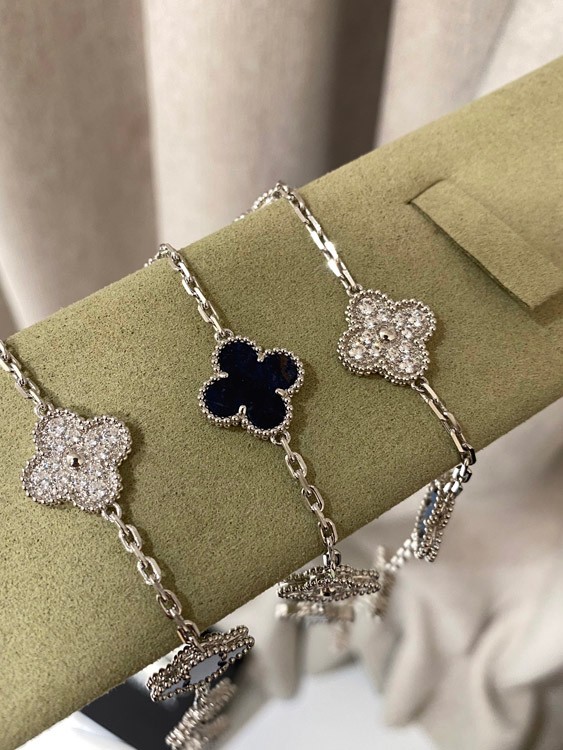 Van Cleef & Arpels white gold natural blue five-pattern stone diamond bracelet-3686